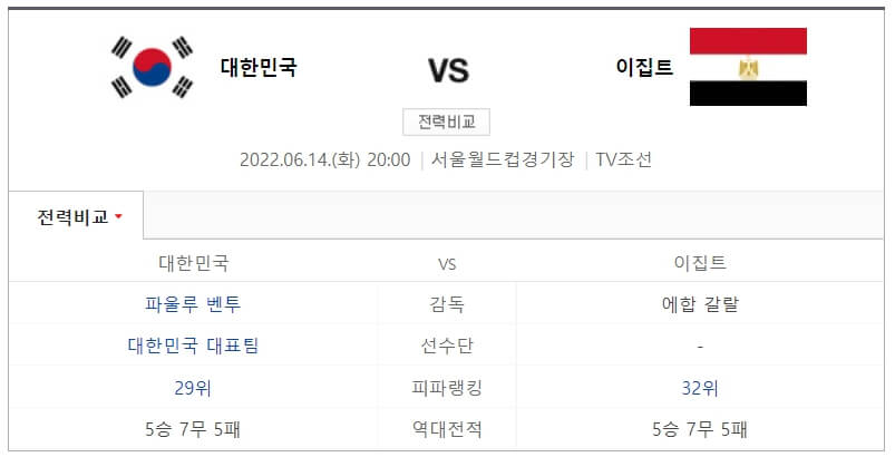 우리나라보다 피파랭킹은 낮지만 아프리카 팀과의 대결이 필요했고, 손흥민과 살라의 대결구도 볼 수 있기에 좋은 매치업이 될 것 같습니다.