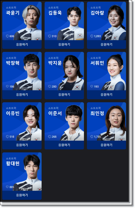 여자 : 김아랑 박지윤 서휘민 이유빈 최민정