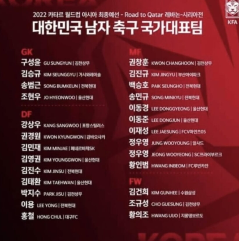하지만 중립 지역이기는 하지만 중동에서 열리는 원정인 만큼 한국은 월드컵 본선 조기 확정 목표를 위해 집중력을 유지하고, 방심하면 안될 것입니다.