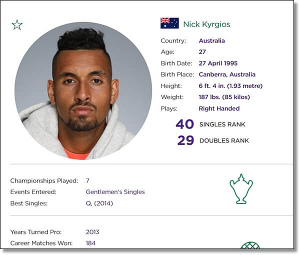 키리오스는 이번 대회 준결승에서 나달과 대결이었으나 나달이 복근 파열 부상으로 기권해 힘들이지 않고 결승에 오르게 되었습니다.
