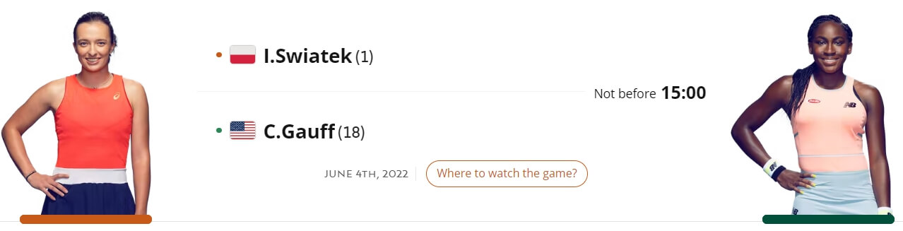 시비옹테크는 2020년 이 대회에서 우승했고, 고프는 이번이 생애 첫 메이저 대회 결승 진출입니다.