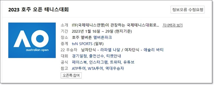 - 호주 오픈 테니스 대회